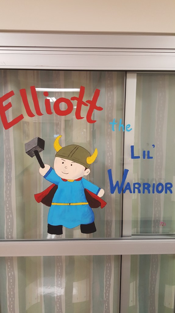 We told the nurse what we wanted and she came up with this character on her own. The warrior was so fitting that it quickly turned into the image used to represent Elliott’s strength and journey.